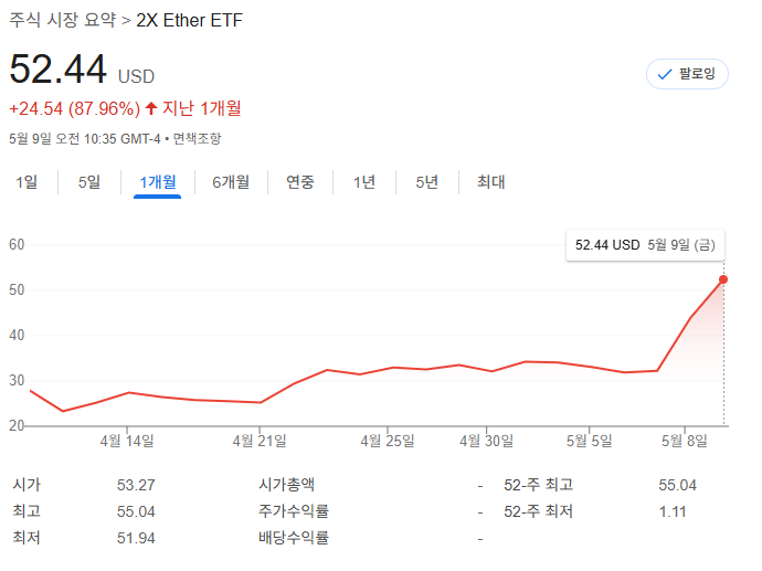 2배 수익을 노린다? ETHU(2x Ether ETF)
